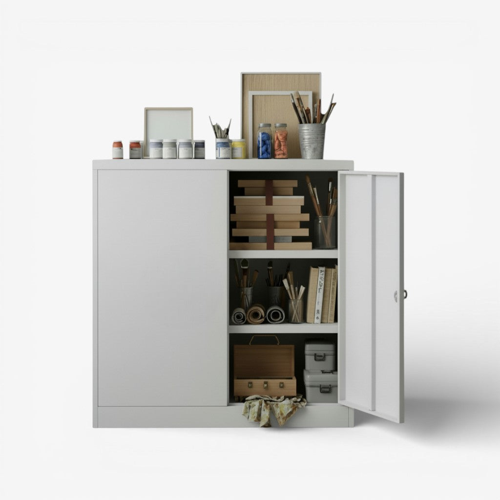 • Gabinete metalico 2 puertas bajo con 2 bandejas - gris